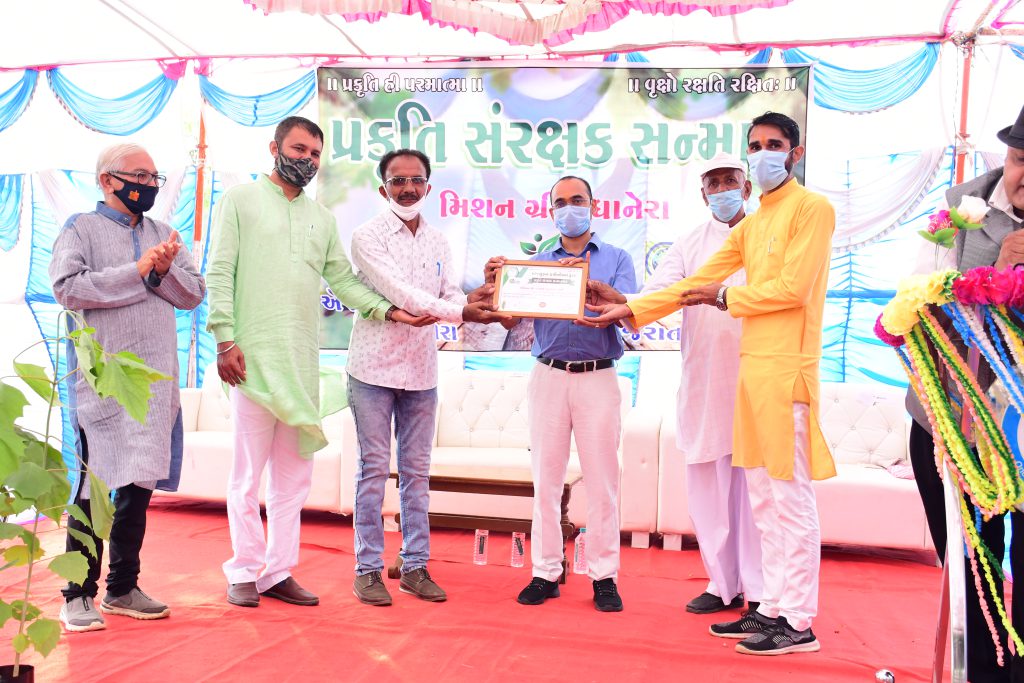 In the year 2016, the “Vruksha Parab” (Free Trees) event was organized. In which we distributed free saplings of fruits and flower plants in Dhanera and nearby villages. We gave 2 saplings to each person of his/her own choice from varieties of plants namely, Neem, Borasali, Guava, Custard Apple, Saptaparni, Sweet Moringa, Curry leaves, Senna (Kashid), Golden shower (Garmalo), Gulmohar, Nagode, Pipal, Tulsi, Jambu, Ashok ( Asopalav), Sevan, Aradusi (medicinal plant), Umara. The name, mobile number, and address of the person carrying the plant were also recorded. That has been done for 3 consecutive years and planted around 2000 trees.