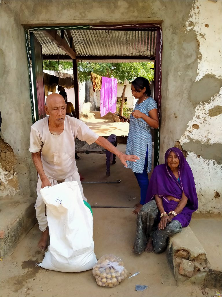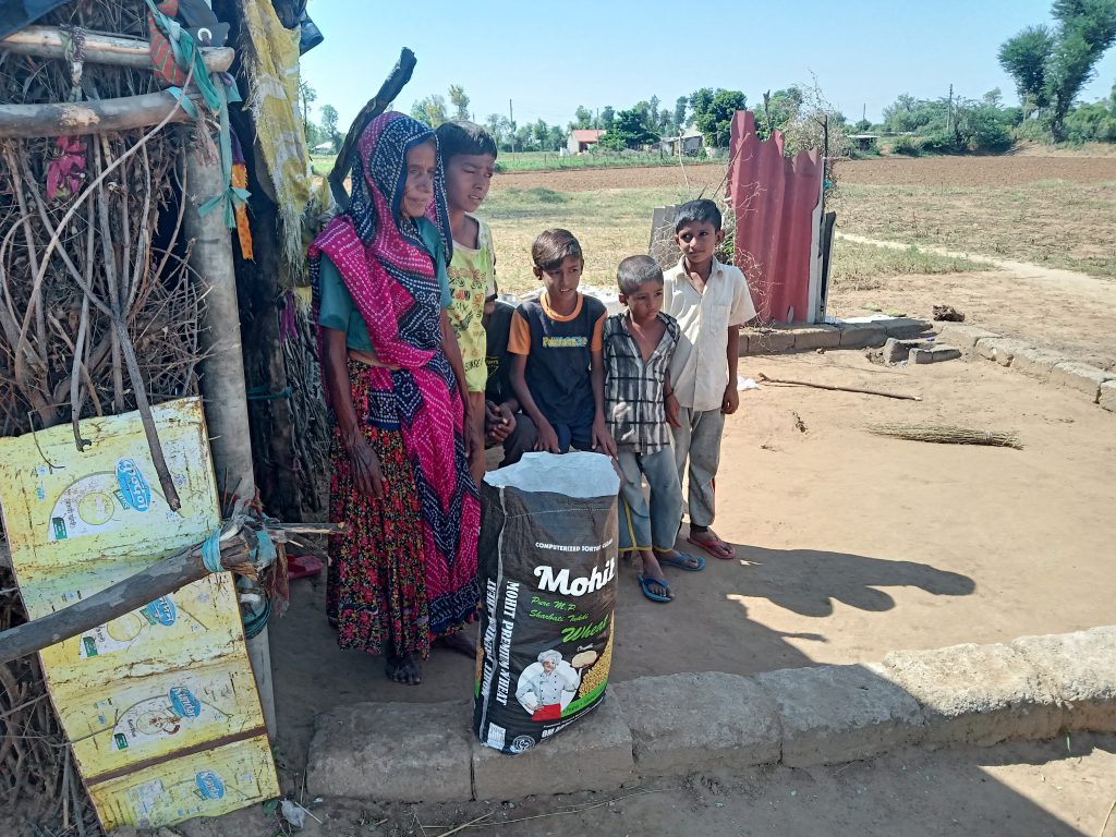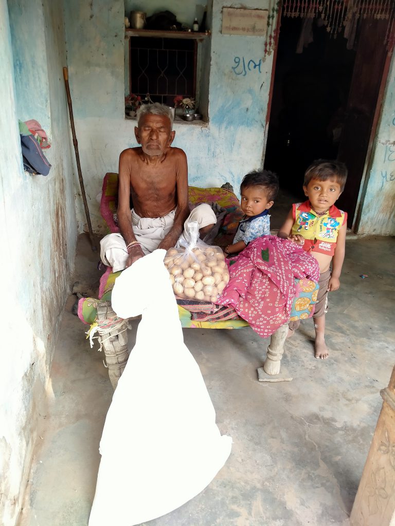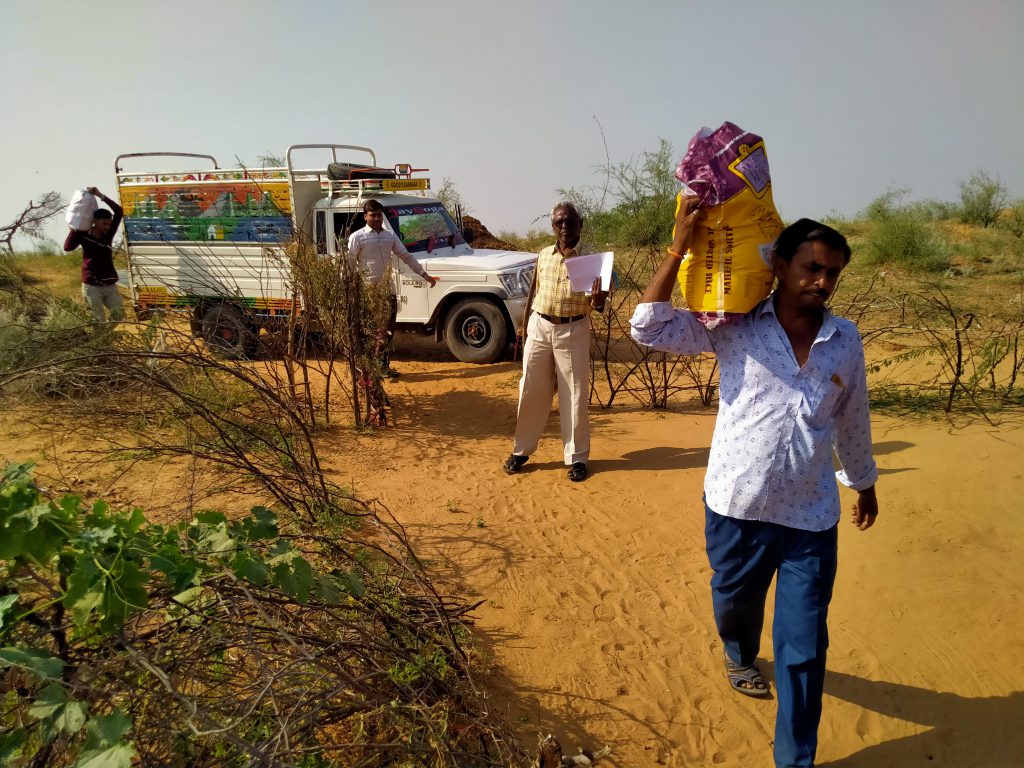 Monthly ration kit costs approx ₹1500 which contains chili, turmeric, jaggery, oil, tea, soap, mungdaal, rice , wheat , sugar, salt etc for two people. These kits are distributed on a regular interval in villages of Banaskantha district, Gujarat.